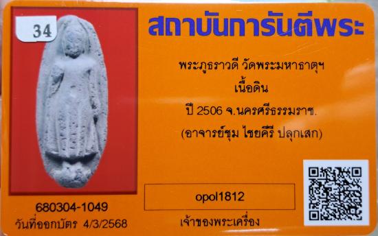 พระภูธราวดี วัดพระมหาธาตุฯ เนื้อดิน ปี06 จ.นครศรีธรรมราช อาจารย์ชุม ไชยคีรี ปลุกเสก พร้อมบัตรรับรอง สภาพสวยเดิมๆๆๆๆๆ |