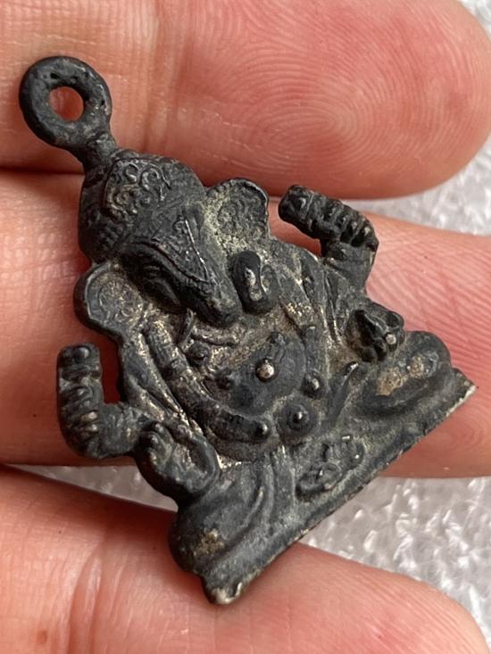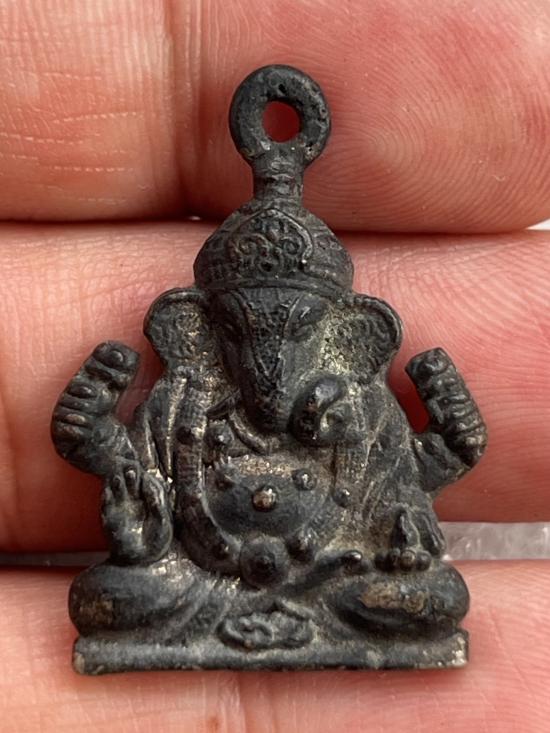 เหรียญหล่อครึ่งซีกพระพิฆเนศ หลังเรียบ สวยเดิม ไม่ทราบที่