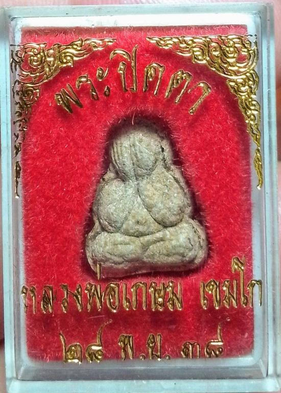 เคาะเดียวแดง.....พระปิดตาเนื้อผงยาจินดามณี หลวงพ่อเกษ เขมโก เมตตาอธิฐานจิต 4 วาระ ปี 2538 พร้อมกล่องเดิมสภาพสวย |