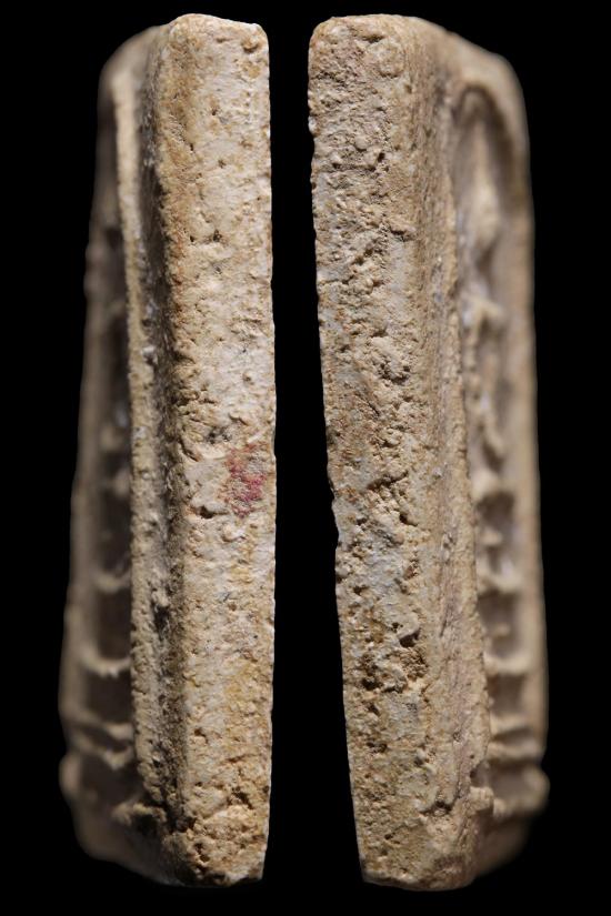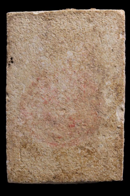 เคาะเดียวแดง...พระสมเด็จเนื้อผงเก่า พิมพ์ฐานแซม มีหมึกแดงจางด้านหลัง ไม่ทราบที่ |