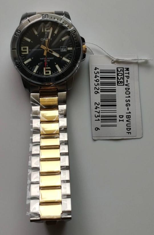 @@@ เคาะเดียวแดง @@@ นาฬิกา CASIO รุ่น MTP-VD01SG-1BV ของใหม่ พร้อมกล่อง คู่มือ ใบรับประกันศูนย์ไทย 1 ปี ตัวเรือนและสายสแตนเลสสตีล 2 กษัตริย์ ขนาดตัวเรือน (ก x ย x ส) 49 × 45 × 10.3 mm น้ำหนัก 118 g สายสเตนเลสสต |
