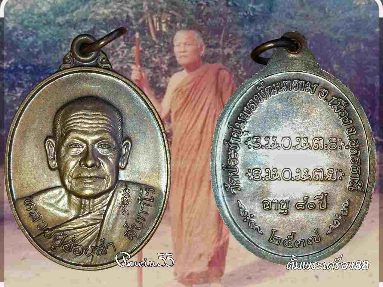 เหรียญรุ่น 3 หลวงปู่อ่อนสา สุขกาโร ปี 2537 เนื้อทองแดง ผิวรุ้งสภาพสวย |