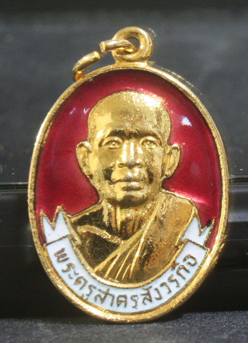 เหรียญพระครูสาครสังวรกิจ วัดยกกระบัตร สมุทรสาคร เนื้อทองแดงกะหลั่ยทองลงยาแดง งานผูกพัทธสีมา ปี ๒๕๒๗
