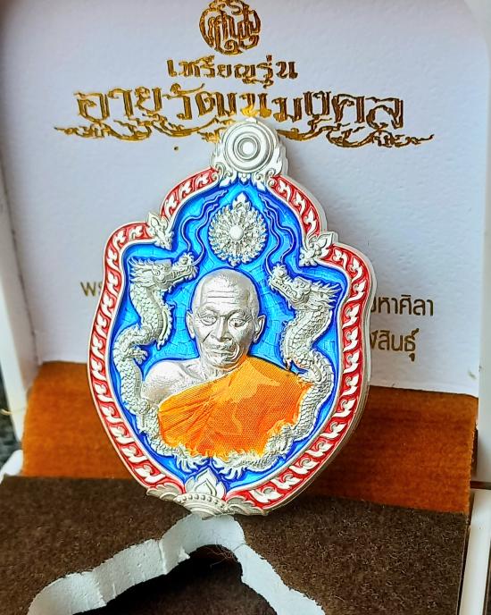 วัดใจ หลวงปู่มหาศิลา สิริจันโท(หลวงปู่ศิลา) อายุวัฒนะมงคล81 เหรียญมังกร "เนื้อเงินลงยา"