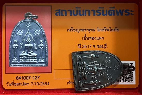 ***เคาะแรกวัดใจ*** เหรียญพระพุทธ วัดศรีพโลทัย เนื้อทองแดง ปี 2517 จ.ชลบุรี สวย พร้อมบัตรรับรอง