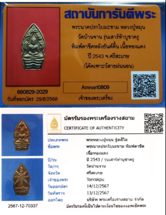 พระนาคปรกใบมะขาม หลวงปู่หมุน พิมพ์ตาขีด รุ่นเสาร์ 5 บูชาครูวัดบ้านจานปี 43 |