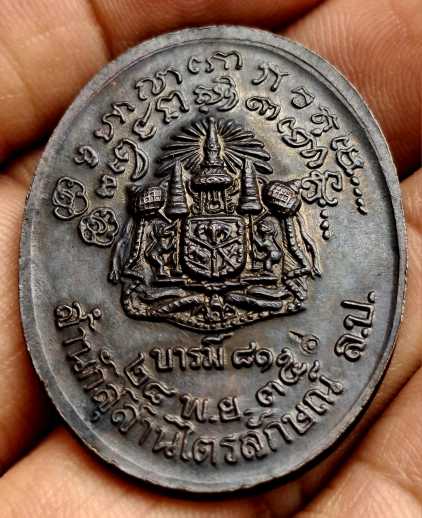 เหรียญรูปไข่ รุ่นบารมี 81 เนื้อทองแดง หลวงพ่อเกษม เขมโก ตอกโค๊ตด้านหลัง สร้างปี 2535 กรมตำรวจจัดสร้าง ด้านหลังเป็นตราแผ่นดิน เหรียญรุ่นนี้ออกแบบแกะพิมพ์ได้สวยงาม หลวงพ่อท่านอธิษฐานจิตปลุกเสกให้เต็มที่ทรงความศักดิ์สิทธิ์และเปี่ยมไปด้วย มหาพุทธานุภาพเป็นอย่างยิ่ง ลูกศิษย์ลูกหาผู้ที่ศรัทธาหลวงพ่อไม่ควรพลาดยิ่ง หากใครรับราชการแล้วต้องมี ไว้บูชา |