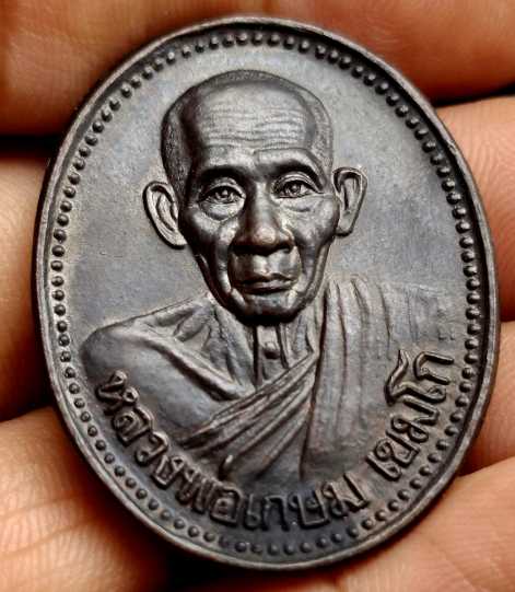 เหรียญรูปไข่ รุ่นบารมี 81 เนื้อทองแดง หลวงพ่อเกษม เขมโก ตอกโค๊ตด้านหลัง สร้างปี 2535 กรมตำรวจจัดสร้าง ด้านหลังเป็นตราแผ่นดิน เหรียญรุ่นนี้ออกแบบแกะพิมพ์ได้สวยงาม หลวงพ่อท่านอธิษฐานจิตปลุกเสกให้เต็มที่ |