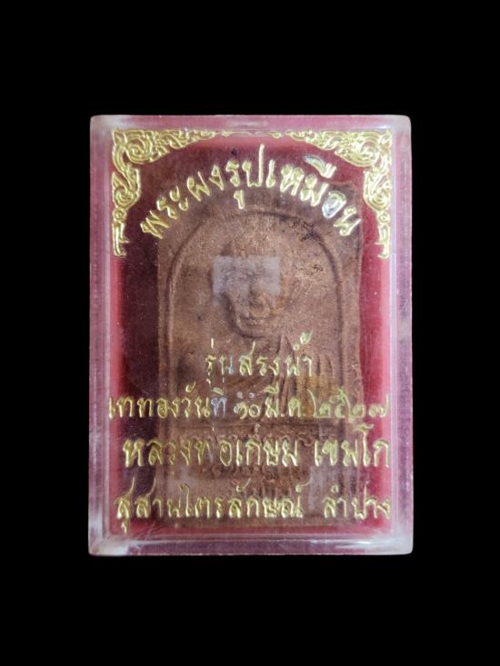 พระผงรูปเหมือน รุ่นสรงน้ำ ปี 2527 หลวงพ่อเกษมเขมโก ลำปาง มีเส้นเกศา พร้อมกล่องเดิม