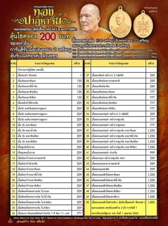 *** ลุ้นเนื้อ 5 องค์ รุ่นนิยม เคาะเดียว ** เหรียญห่วงเชื่อม รุ่น ทองปาฏิหาริย์ ซีลเดิมลุ้นเนื้อ หลวงพ่อทอง สุทธสิโล วัดบ้านไร่ จ.นครราชสีมา พ.ศ.2565 |