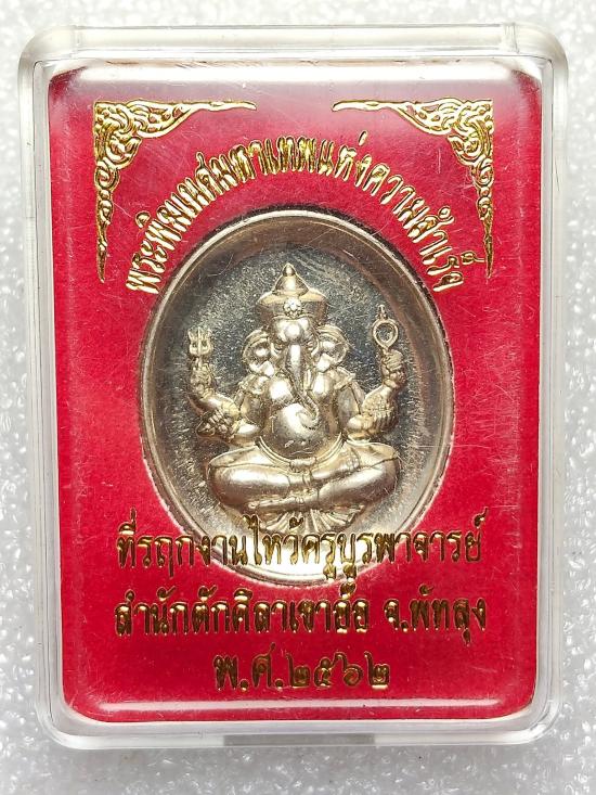 เหรียญพระพิฆเนศรุ่นแรก วัดเขาอ้อ ปี 2562 ที่รฤกงานไหว้ครูบูรพาจารย์เขาอ้อ 2562 เนื้ออัลปาก้า หลังตอกโค๊ตกรรมการ พระพิฆเนศเทพแห่งความสำเร็จ องค์มหาเทพผู้เปี่ยมล้นแห่งความสุขสำเร็จทั้งปวง ทั้งด้านการศึกษา โชคลาภ ค้าขายเงินทอง และความรัก มักนำพาความสำเร็จในทุกๆด้านให้แก่ผู้ที่บูชา