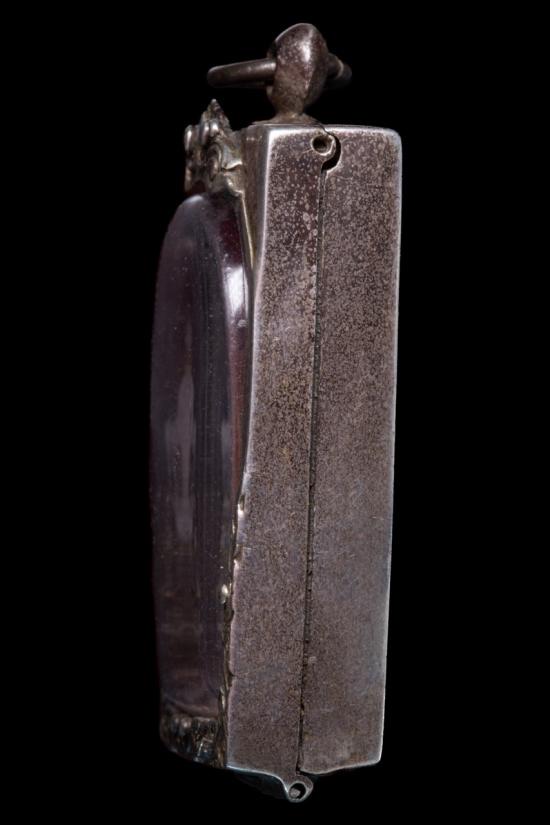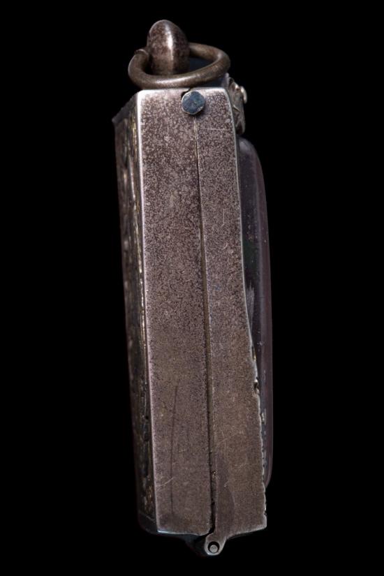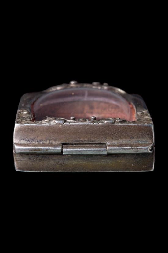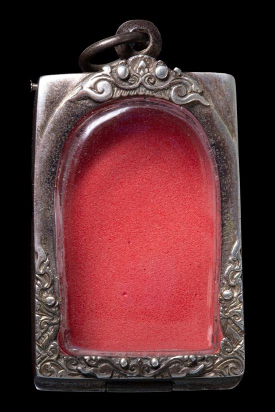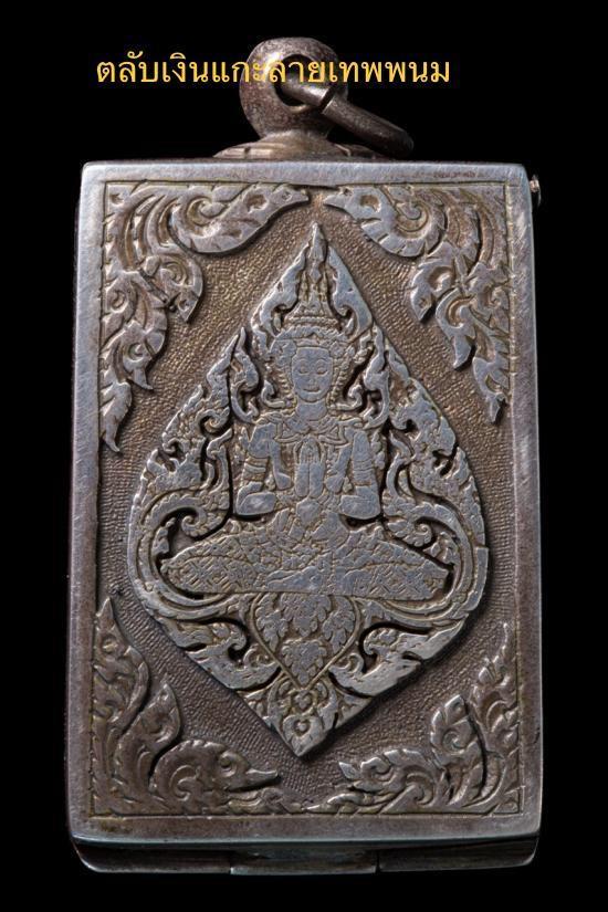 ตลับเงินโบราณเก่าใส่พระพิมพ์สมเด็จด้านหลังแกะลายเทพพนมสวยๆ สภาพสมบูรณ์