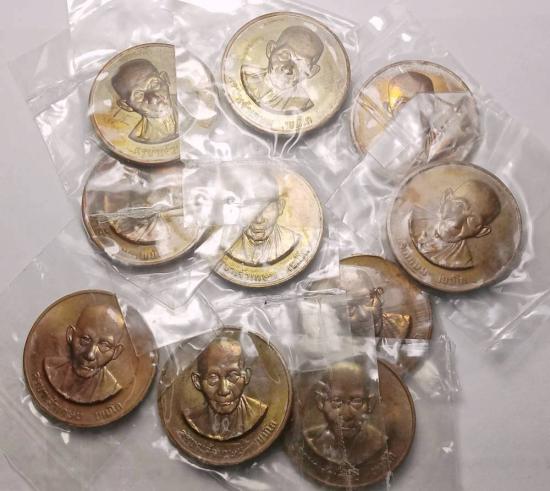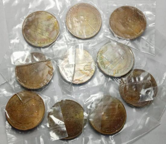เคาะเดียวแดง เหรียญกลม ที่ระลึกวันพญาวัน เนื้อทองแดง บล็อคกองกษาปณ์ ปี 38 อยู่ในซีนเดิมๆ จำนวน 10 เหรียญ