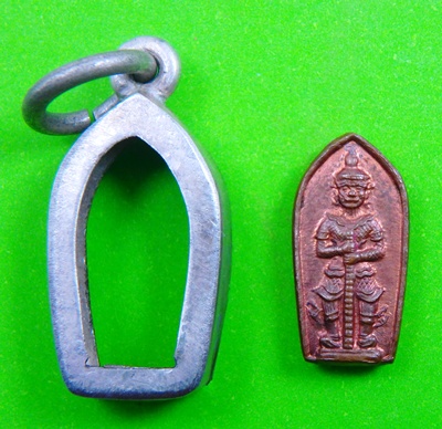 เคาะเดียวแดงปรกท้าวเวสสุวรรณ เนื้อทองแดง บล็อกหนา หลวงพ่ออิฏฐ์ วัดจุฬามณี พร้อมกรอบเงิน