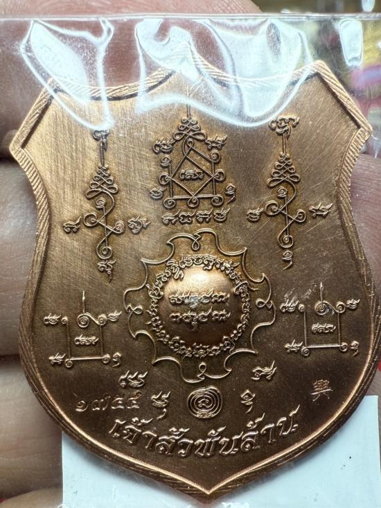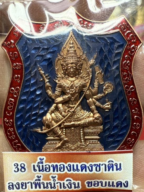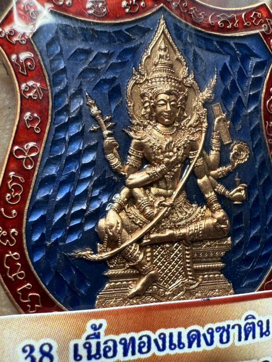 เหรียญมหาพรหม เจ้าสัวพันล้าน (จัดสร้างโดยบอย ท่าพระจันทร์) เหรียญ 2 อาจารย์ เนื้อทองแดงซาตินลงยาพื้นน้ำเงิน ขอบแดง