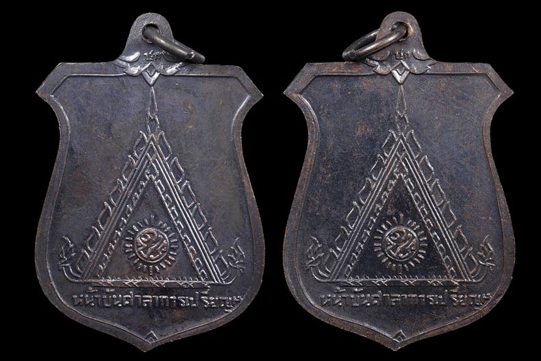 จำนวน 2 เหรียญ เหรียญหน้าบันศาลาการเปรียญ หลวงพ่อมุม วัดปราสาทเยอร์ บล๊อคนิยม 9 กา เนื้อทองแดง ปี 2515 |