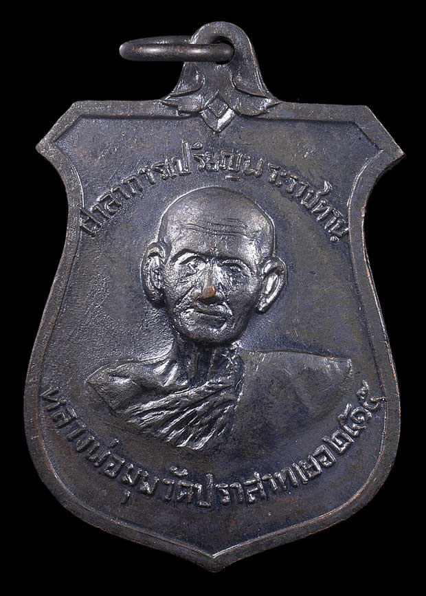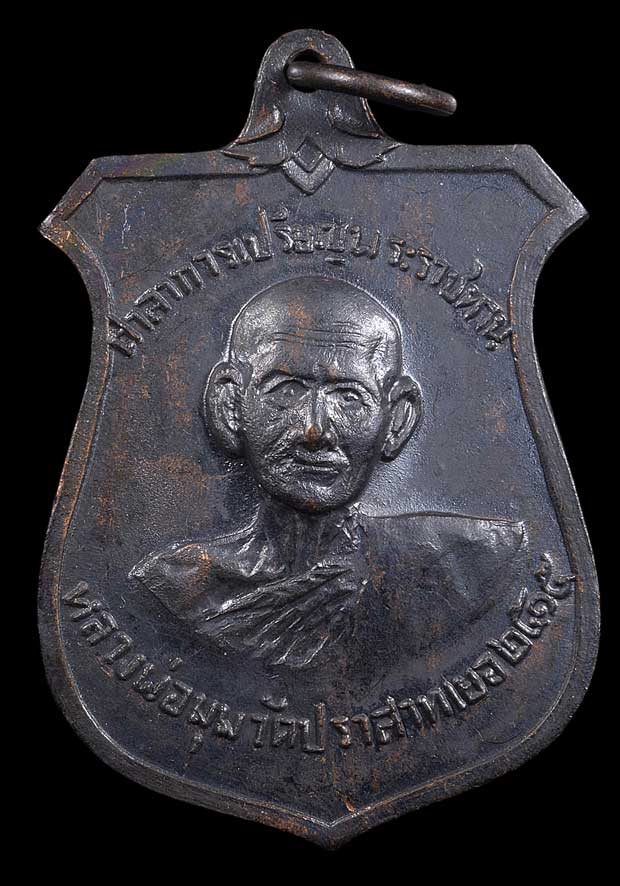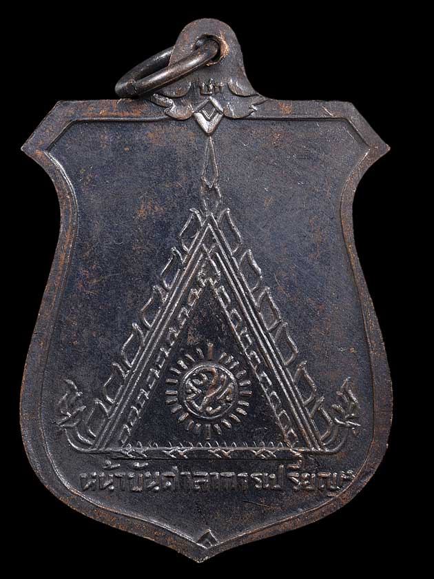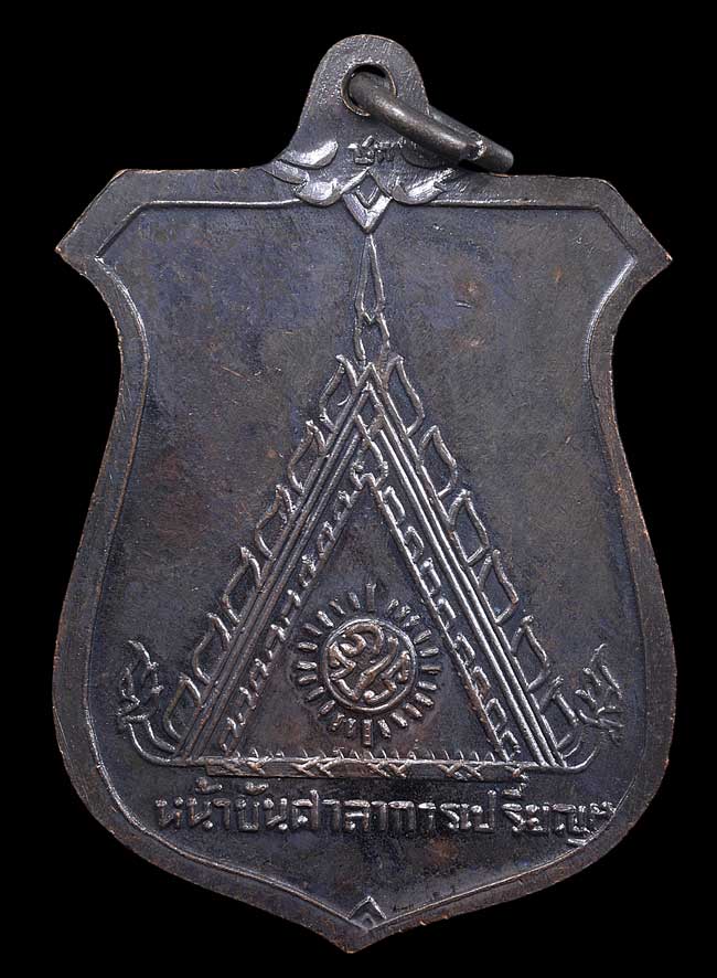 -เหรียญหน้าบันศาลาการเปรียญ หลวงพ่อมุม วัดปราสาทเยอร์ บล๊อคนิยม 9 กา เนื้อทองแดง ปี 2515