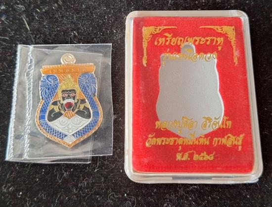 เหรียญพระราหูอมจันทร์ หลวงปู่ศิลา เมตตาอธิษฐานจิต รุ่นเหนือดวง เนื้ออัลปาก้าลงยา No.415 |
