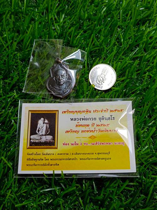 " วัดใจ เคาะเดียวแดง " เหรียญหลวงพ่อกวย ชุติธโร วัดเดิมบาง จ.สุพรรณบุรี รุ่นบุญกฐิน ปี 2565 เนื้อสัตตะโลหะรมดำ หมายเลข 1772 พร้อมซองเดิมจากวัด |
