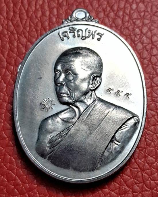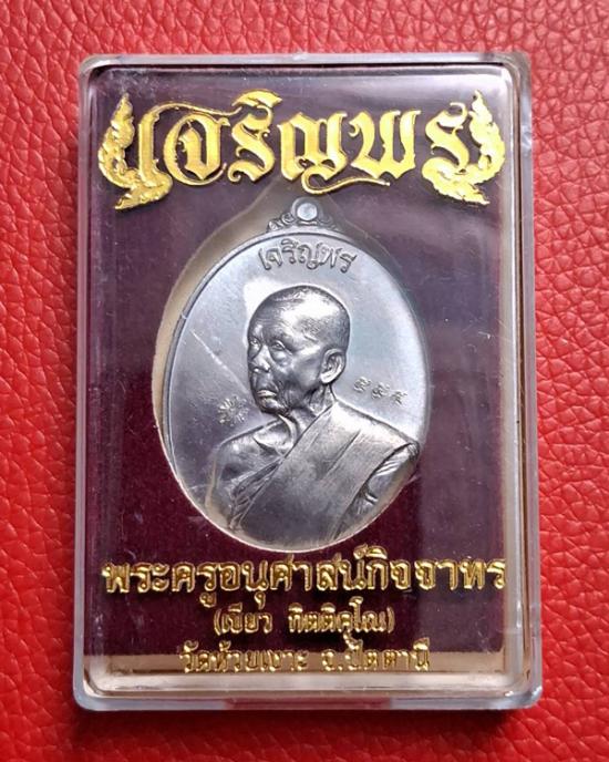 เหรียญเจริญพร (บน) พ่อท่านเขียว วัดห้วยเงาะ ปี 58 เนื้อตะกั่ว เลขสวย เลขตอง 555 กล่องเดิม ไม่ผ่านใช้