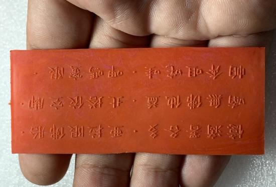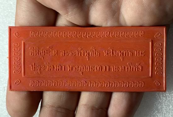 แผ่นยันต์พลาสติกแดง หลังหนังสือจีน หลวงพ่อโอภาสี อาศรมบางมด |