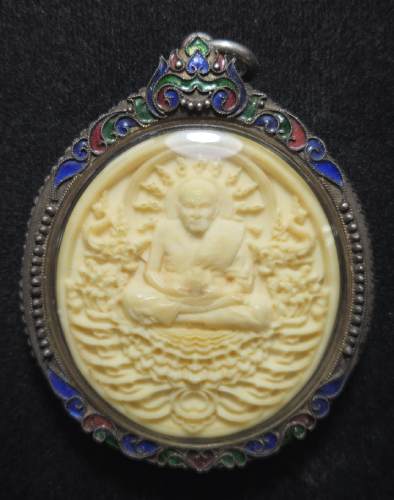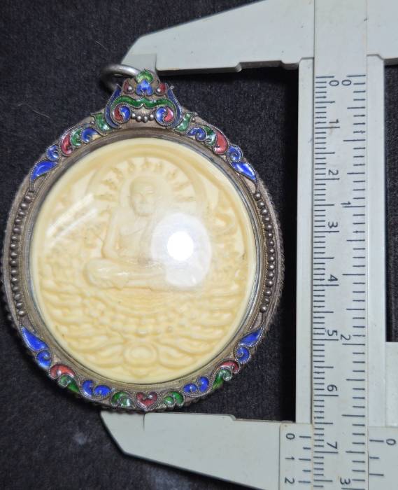 พระงาแกะ หลวงปู่ทวด วัดช้างให้ แกะจากแผ่นงาบริเวณใจกลางงา แผ่นใหญ่ครับงานละเอียดมีมิติ เลี่ยมกรอบเงินลงยา สุโขทัย องค์พระ กว้าง 2 นิ้ว สูงเกือบ 3 นิ้วครับ สภาพเดิม ๆ มีเกจิปลุกเสก สนใจเชิญครับ |