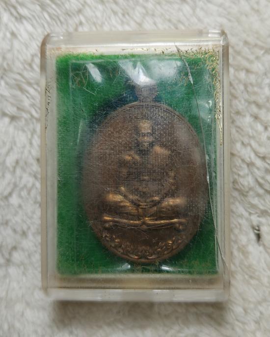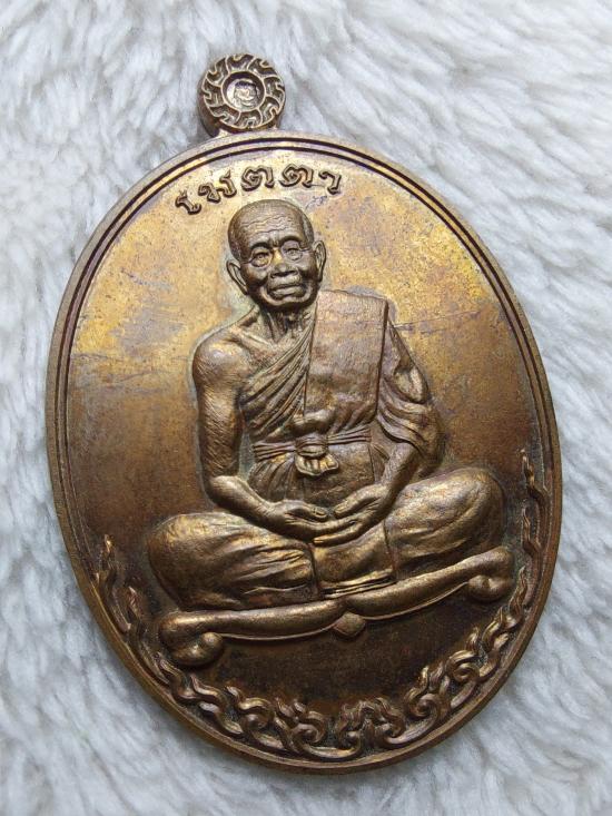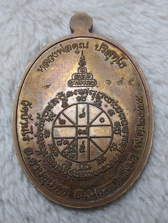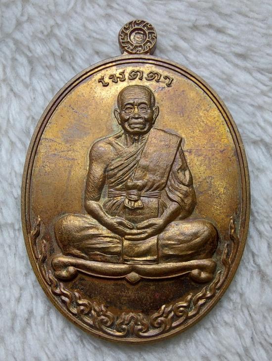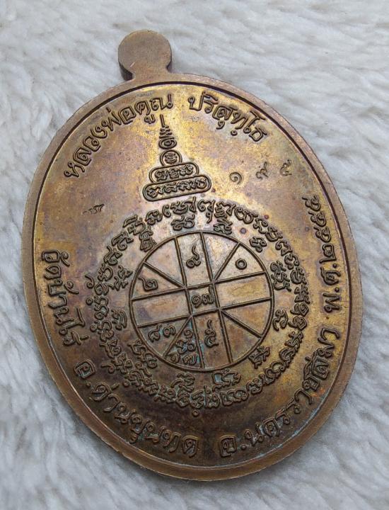 เหรียญรุ่นเมตตา หลวงพ่อคูณ วัดบ้านไร่ จ.นครราชสีมา ปี2555 พิมพ์นั่งเต็มองค์ เนื้อโลหะของบ้านเชียง ด้านหลังตอกโค๊ต และ ตอกหมายเลข no.195