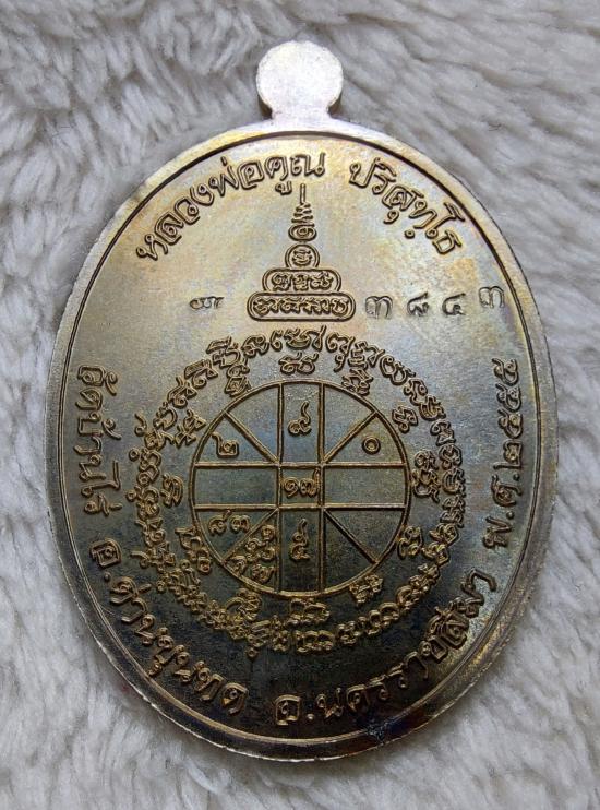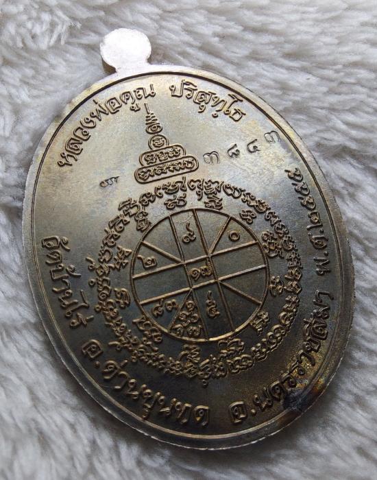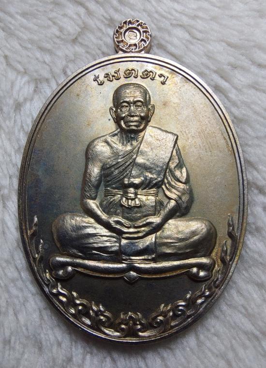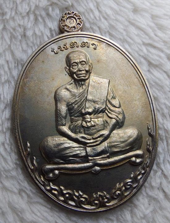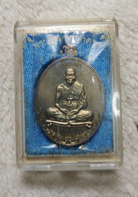 เหรียญรุ่นเมตตา หลวงพ่อคูณ วัดบ้านไร่ จ.นครราชสีมา ปี2555 พิมพ์นั่งเต็มองค์ เนื้ออัลปาก้า ด้านหลังตอกโค๊ต และ ตอกหมายเลข no.3843