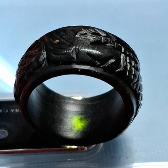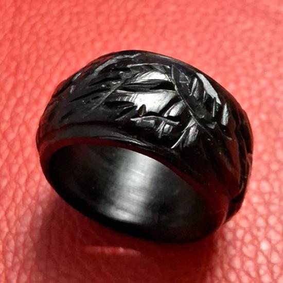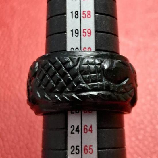 แหวนหยกดำแกะลายมังกร หยกพม่าแท้ 100 % (แสงส่องผ่าน) เส้นผ่าศูนย์กลาง 2.1 ซม. หนา 1.3 ซม. หายาก ไม่ค่อยได้มาบ่อย ราคาค่อนข้างสูง (กท.06)
