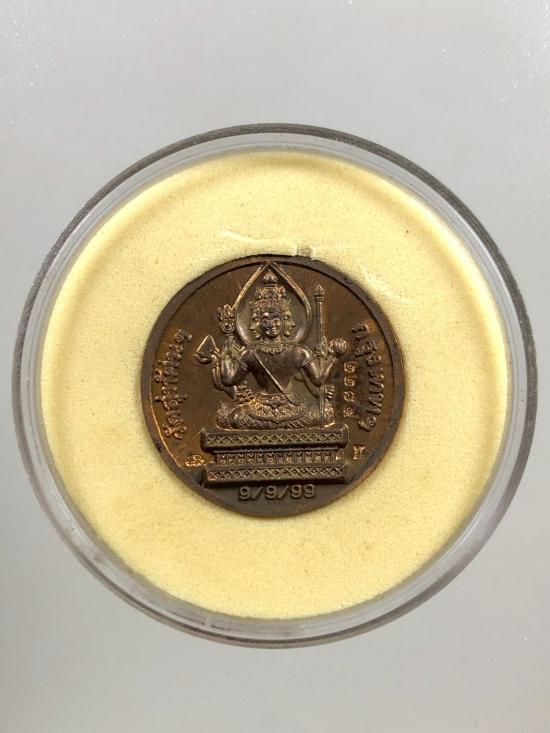 เคาะเดียว 350 เหรียญพระพรหมเมตตา วันดี9/9/99 วัดสุทัศน์ฯ กรุงเทพฯ เนื้อทองแดง ปี 2542 |