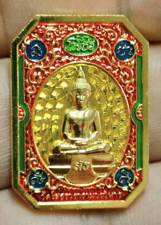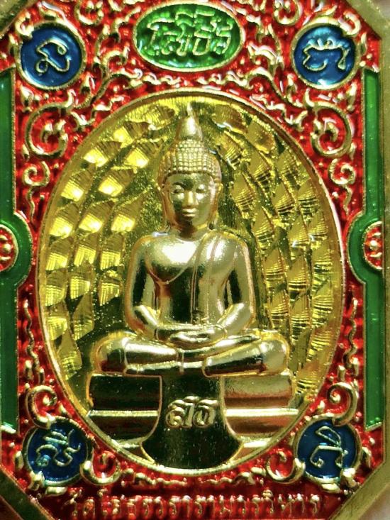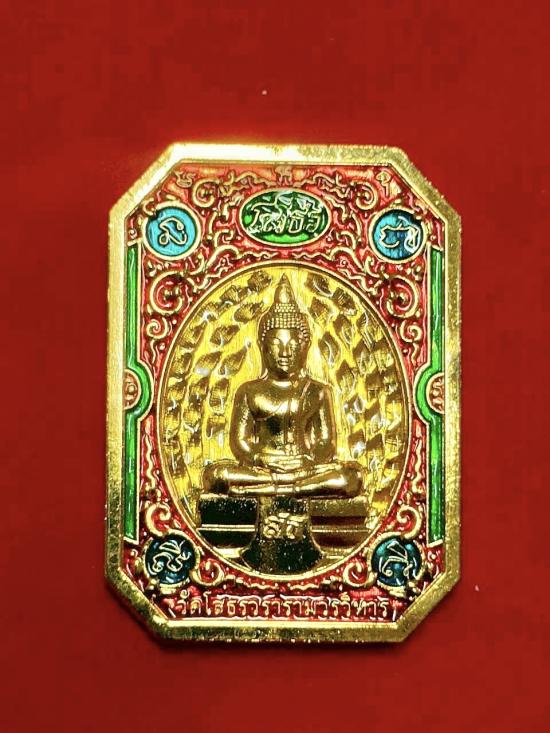 เหรียญหลวงพ่อโสธร รุ่นประวัติศาสตร์ครบรอบ 255 ปี(วาระพิเศษ) เนื้อชุบทองคำลงยา พื้นเหลือง วงนอกลงยาราชาวดี ตอกโค๊ต สธ ตอกหมายเลข 43 |
