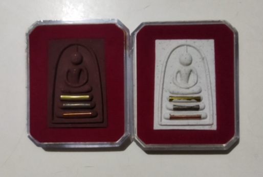 สมเด็จฝังตะกรุด3กษัตริย์ กฐินปี57 หลวงพ่อสมบุญ วัดลำพันบอง 2องค์ ด้านหลังมีเกศาหลวงปู่ด้วยครับ |