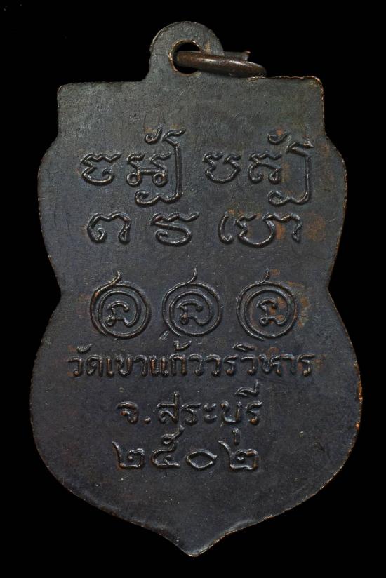 เหรียญ "รุ่นแรก " หลวงพ่อสร้อย วัดเขาแก้ววรวิหาร จ.สระบุรี ปี 2502 เนื้อทองแดงรมดำ |