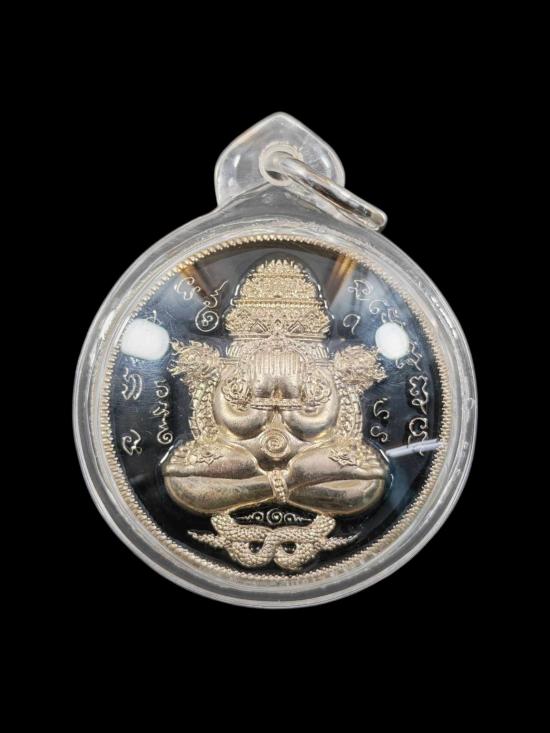 พระปิดตาพังพระกาฬ รุ่น เจ้าสัวพันล้าน โดย บอยท่าพระจันทร์ รายการลุ้นเนื้อ เนื้ออัลปาก้าลงยาสีดำ เลข 1126 กล่องเดิม |