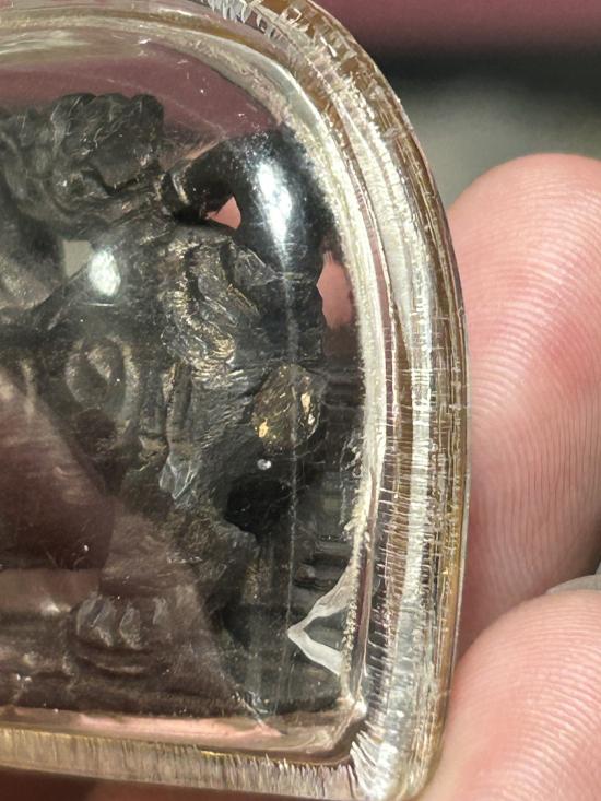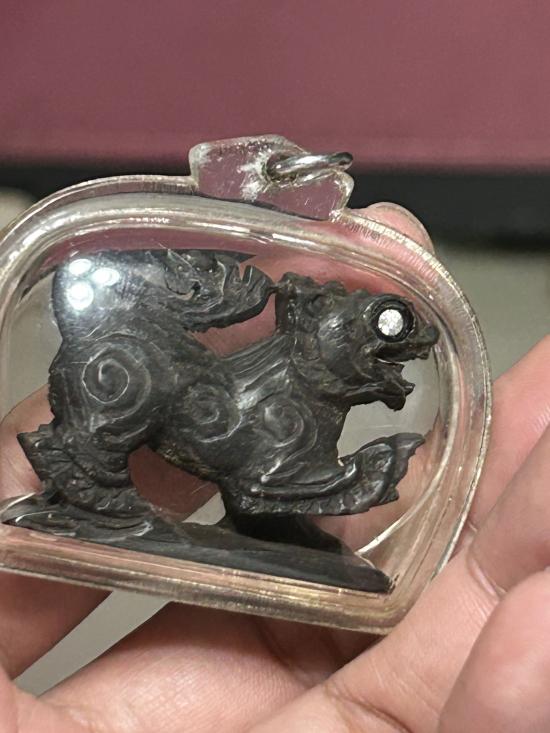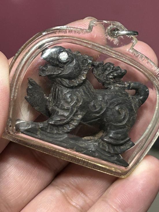 สิงห์ ตาพลอย ไม้แกะ ก้นอุดผง มีจารใต้ฐาน