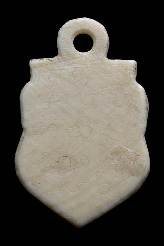 เครื่องราง งาแกะพระราหู ด้านหลังรอยจารเต็ม |