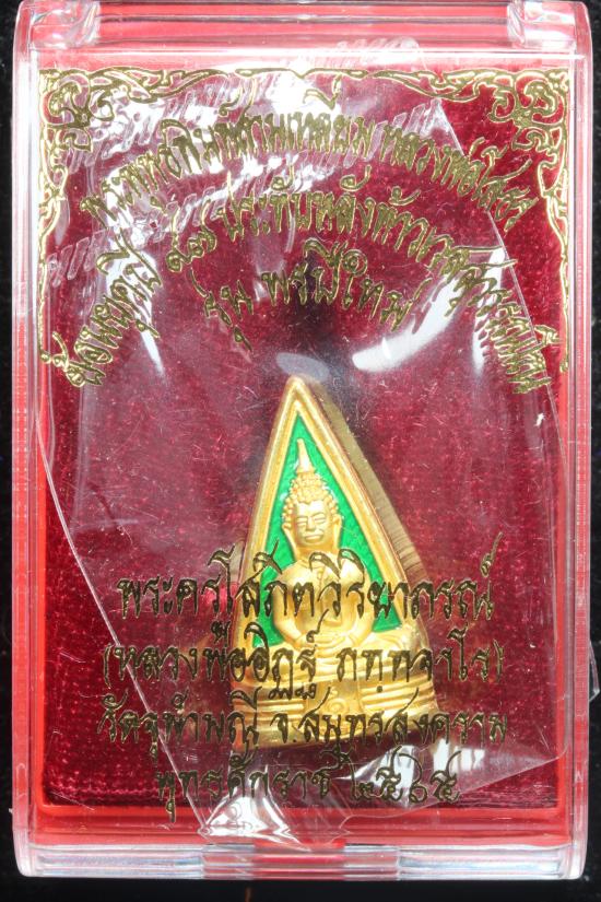 **วัดใจ 20 หายาก ลงยาสวยๆ แยกชุดกรรมการ **พระพุุทธพิมพ์สามเหลี่ยมพระพุทธโสธร ย้อนยุคปี ๙๗ หลังประทับท้าวเวสสุวรรณ รุ่น พรปีใหม่ เนื้อกะไหล่ทอง ลงยา หน้า-หลัง //442-2 |