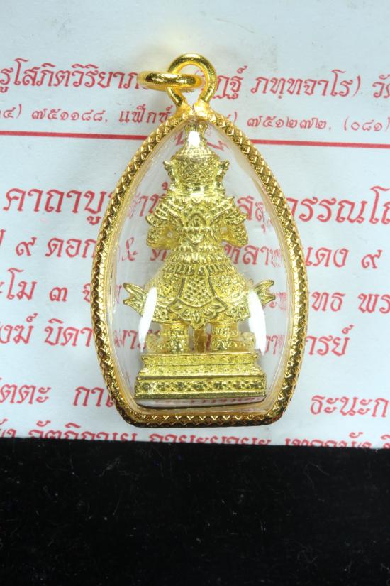 ** พร้อมเลี่ยมไมครอน วัดใจ 100 เดียว **รูปหล่อท้าวเวสสุวรรณ พิมพ์หน้ายักษ์ หลวงพ่ออิฏฐ์ วัดจุฬามณี เนื้อทองเหลือง ปี 2559 สมุทรสงคราม สภาพสวยเดิมๆไม่ผ่านการใช้ พร้อมใบคาถา// |