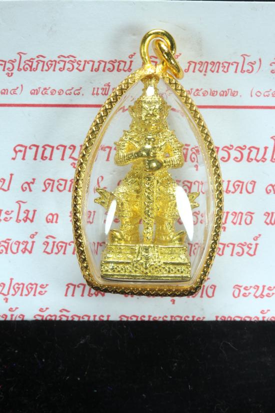 ** พร้อมเลี่ยมไมครอน วัดใจ 100 เดียว **รูปหล่อท้าวเวสสุวรรณ พิมพ์หน้ายักษ์ หลวงพ่ออิฏฐ์ วัดจุฬามณี เนื้อทองเหลือง ปี 2559 สมุทรสงคราม สภาพสวยเดิมๆไม่ผ่านการใช้ พร้อมใบคาถา// |
