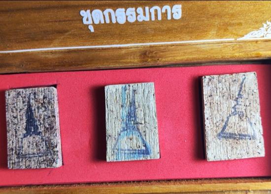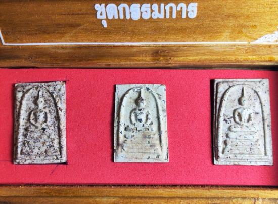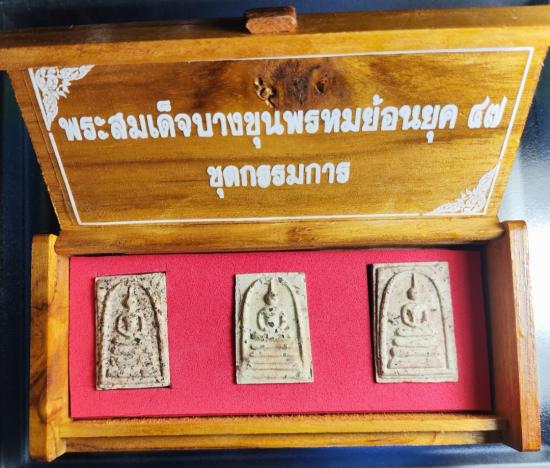 วัดใจ พระสมเด็จชุดกรรมการ ผสมผงเก่าบางขุนพรหม ปี 2547 ( 3 องค์ 3 พิมพ์ กล่องไม้อย่างดี ) |