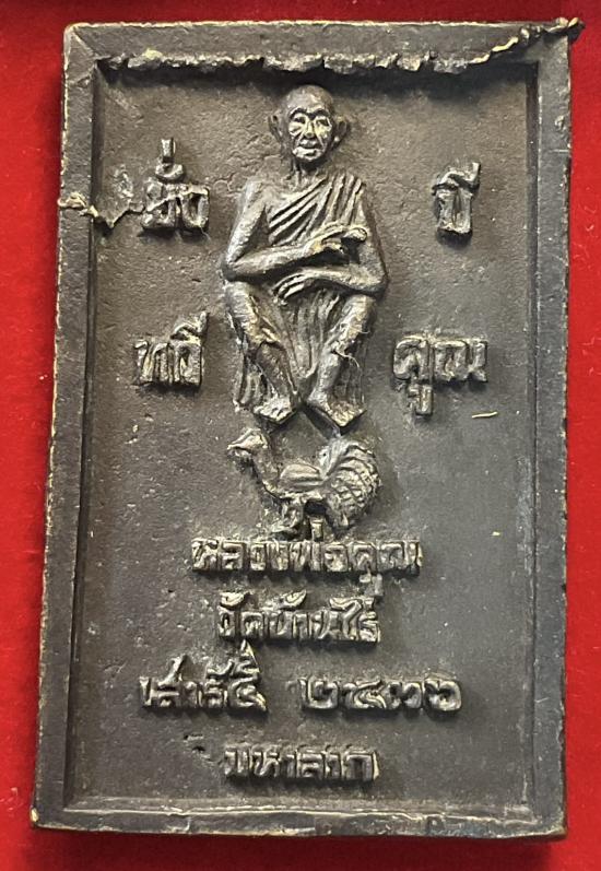วัดใจ เคาะเดียว พระสมเด็จหลวงพ่อคูณ รุ่น มั่งมี ทวีคูณ พิธีเสาร์5 ปีระกา สร้างขึ้นเมื่อปี 2536 วัดบ้านไร่ จ.นครราชสีมา เนื้อโลหะทองแดงรมดำ ด้านหลังเหรียญหลวงพ่อคูณขี่ไก่ มั่ง มี ทวีคูณ |