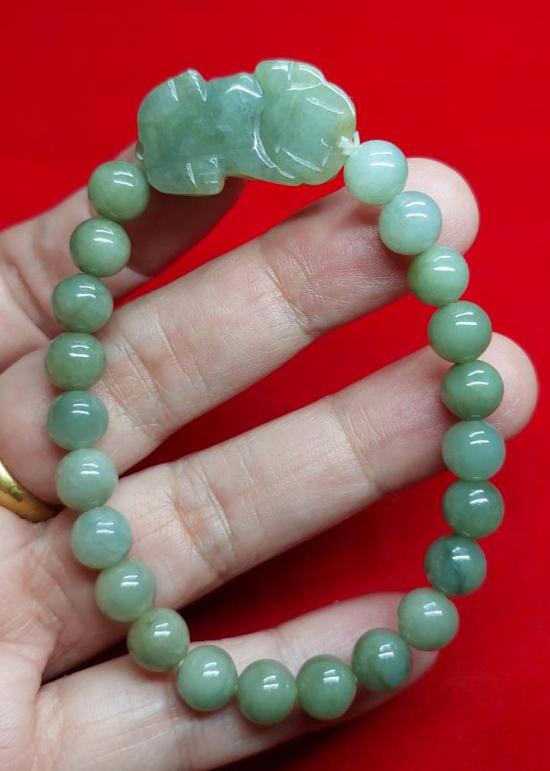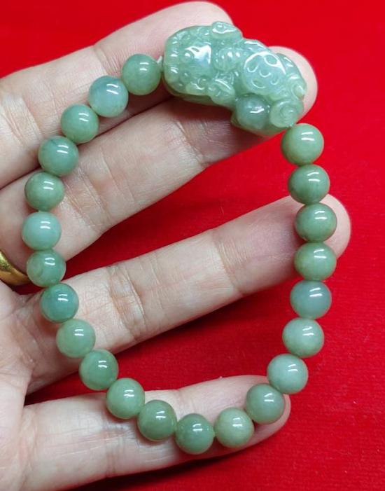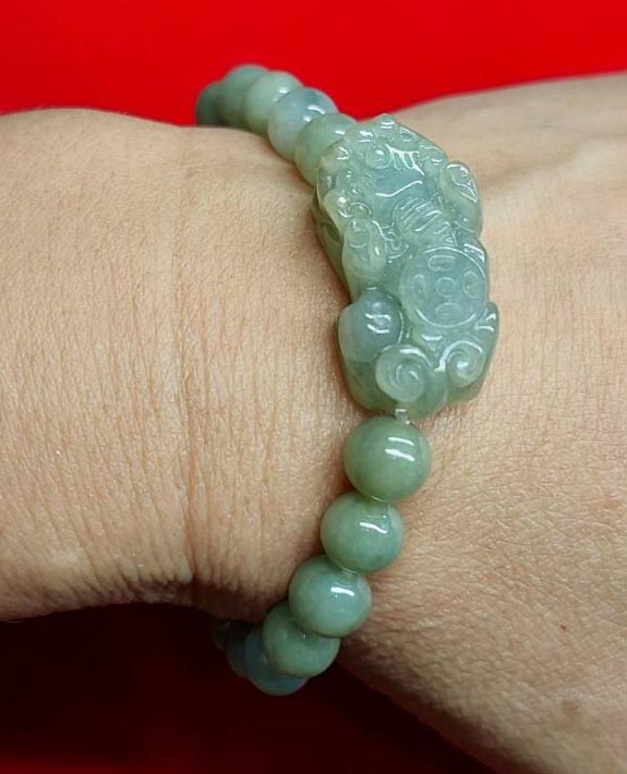 สร้อยข้อมือปี่เซี๊ยะ หินหยกพม่า 8 มิล |
