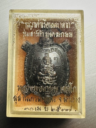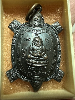 หลวงพ่อเกษม เขมโก พญาเต่าเรือนมหาลาภรุ่นแรก เนื้อทองแดง ปี2537 ตอกโค้ดสวย มีกล่องครับ
