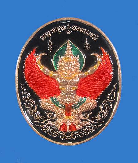 -"" เหรียญพญาครุฑ รุ่นยอดบารมี "" หลวงปู่ศิลา วัดโพธิ์ศรีสะอาด เนื้อทองแดง ลงยาเครื่องทรง ลงยาปีกครุฑ พื้นดำ เลข ๔๙