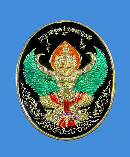 "" เหรียญพญาครุฑ รุ่นยอดบารมี "" หลวงปู่ศิลา วัดโพธิ์ศรีสะอาด เนื้อทองทิพย์ ลงยาเครื่องทรง ลงยาปึกครูฑพื้นดำ เลข ๗๒ |