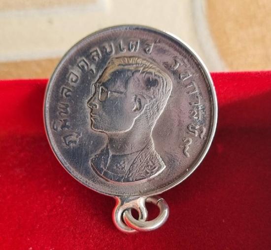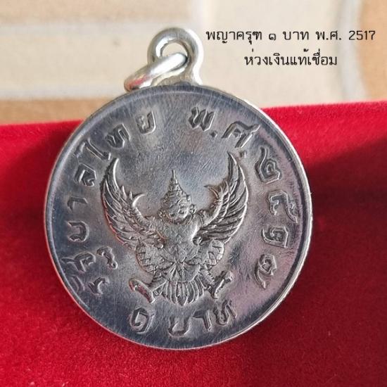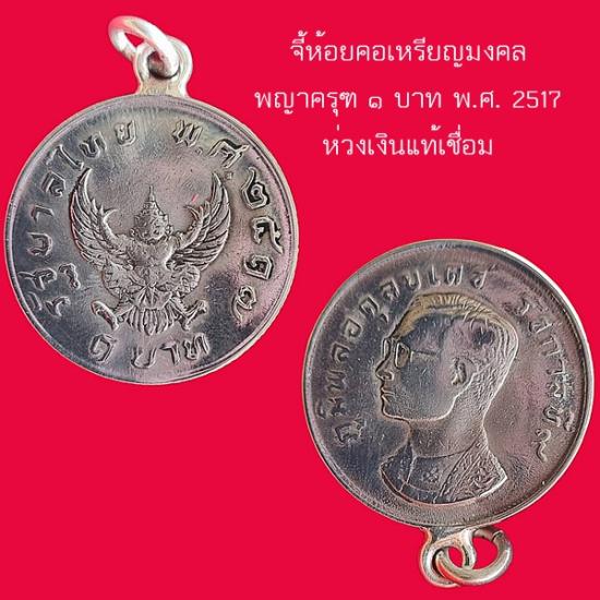 จี้ห้อยคอเหรียญมงคล พญาครุฑ ๑ บาท ปี พ.ศ. 2517 ห่วงเงินแท้เชื่อม |
