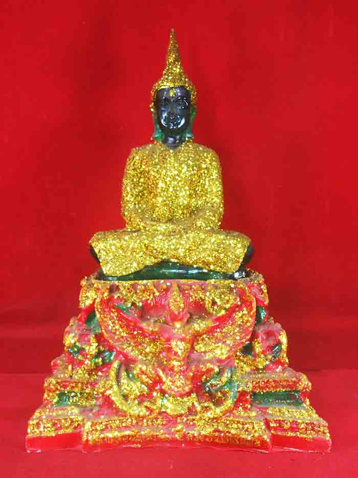 พระพุทธรูปบูชา พระแก้วมรกตทรงเครื่องฤดูหนาว เนื้อเรซิ่น ขนาด 4 นิ้ว สูง 10 นิ้ว ใต้ฐานปั้มย้นต์ห้า หลวงพ่อกำไล วัดหัวเขาปลุกเสก |
