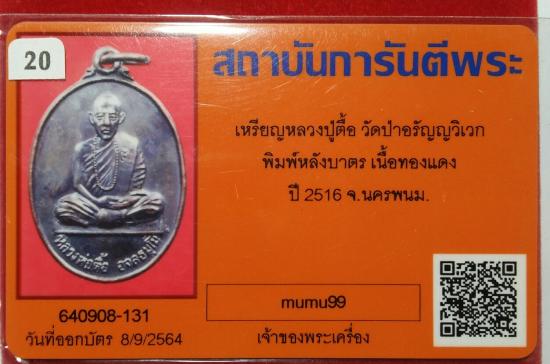 เหรียญหลังบาตรหลวงปู่ตื้อ อจลธมโมปี16 สภาพสวยไม่ผ่านการใช้มาพร้อมบัตรการันตีพระแท้เคาะเดียวแดง |