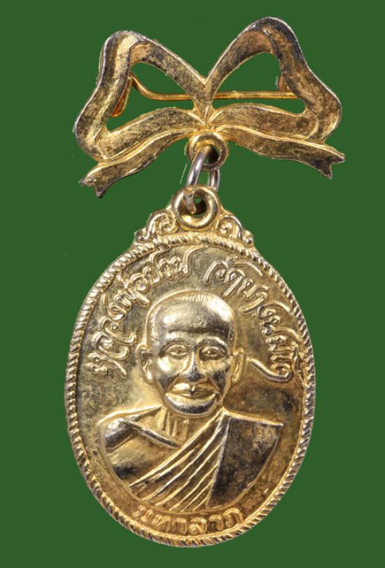 เหรียญโบว์กรรมการ หลวงพ่อปาน-หลวงพ่อฤาษีลิงดำ มหาลาภ-เอกราช ปี 2520 เนื้อโลหะชุบทอง |
