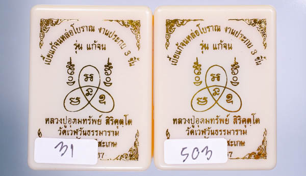งานหล่อ ประกบ3 ชิ้น ข้างในมีผงงาช้างบด มวลสาร เขย่าดูมีมวลสาร สวยๆ หลวงปู่มหาศิลาร่วมเศก แบ่งเบาๆ ออฟชั่นเนื้อจะมีหลายๆ เนื้อหรือลงยาร่วมด้วย